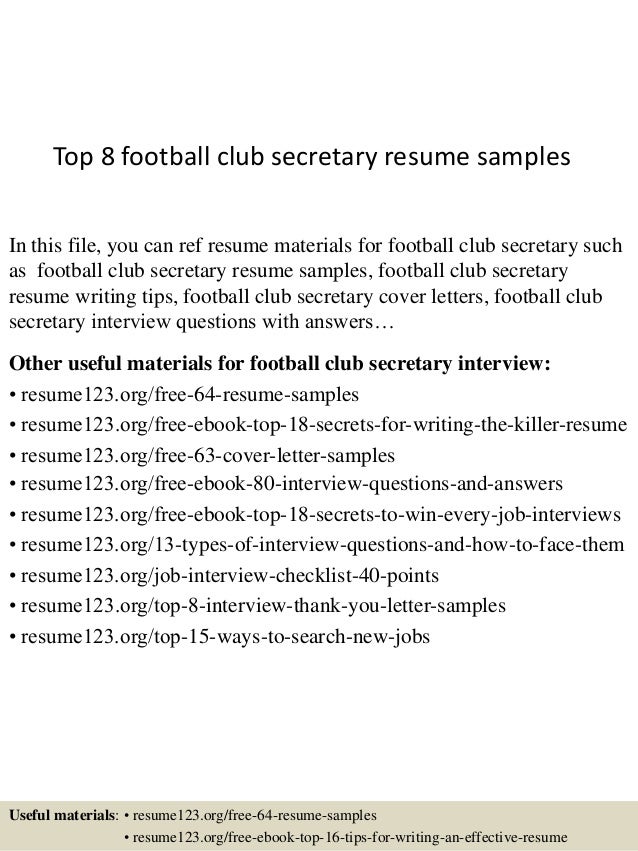 Top 8 Football Club Secretary Resume Samples