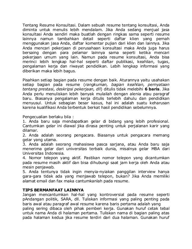 Contoh Resume Kerja Ini 10 Hal Yang Harus Anda Tulis Diedit Com