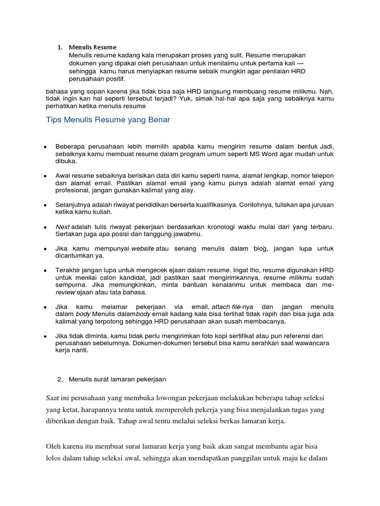 Tips Menulis Resume Cover Letter Yang Bagus Untuk Apply Kerja